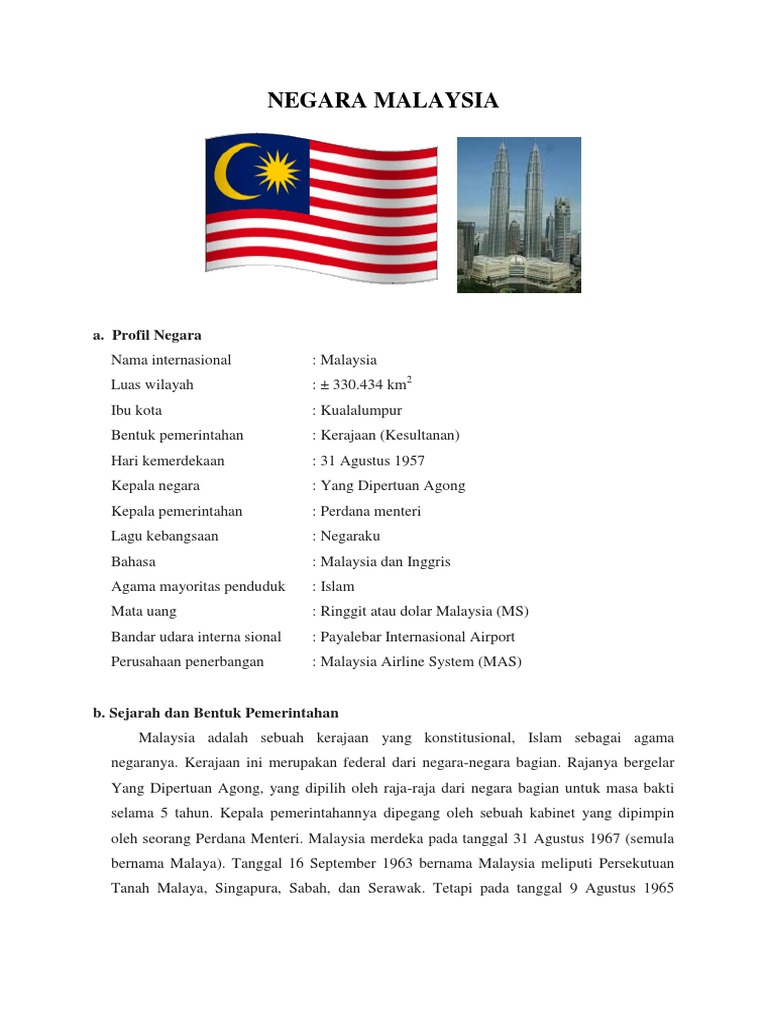 Jumlah penduduk negara ini melebihi 27 juta jiwa. 10072014 malaysia merupakan salah satu negara pendiri organisasi asean. Kekuasaan tertinggi dipegang oleh seorang raja yang bergelar Sri Paduka Baginda Yang Dipertuan Agungkan dipilih oleh 9.